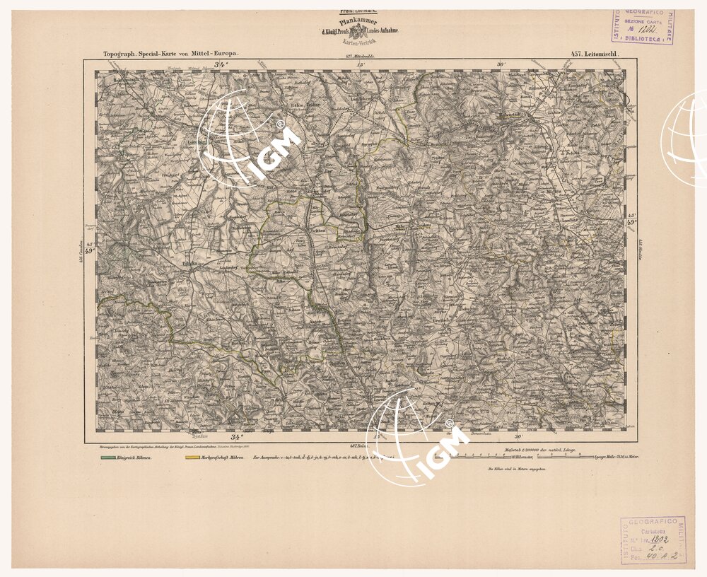 Autore Reymann, luogo di edizione Berlino. Rappresentazione orografica a tratteggio. Tipo in nero colorato a mano.
