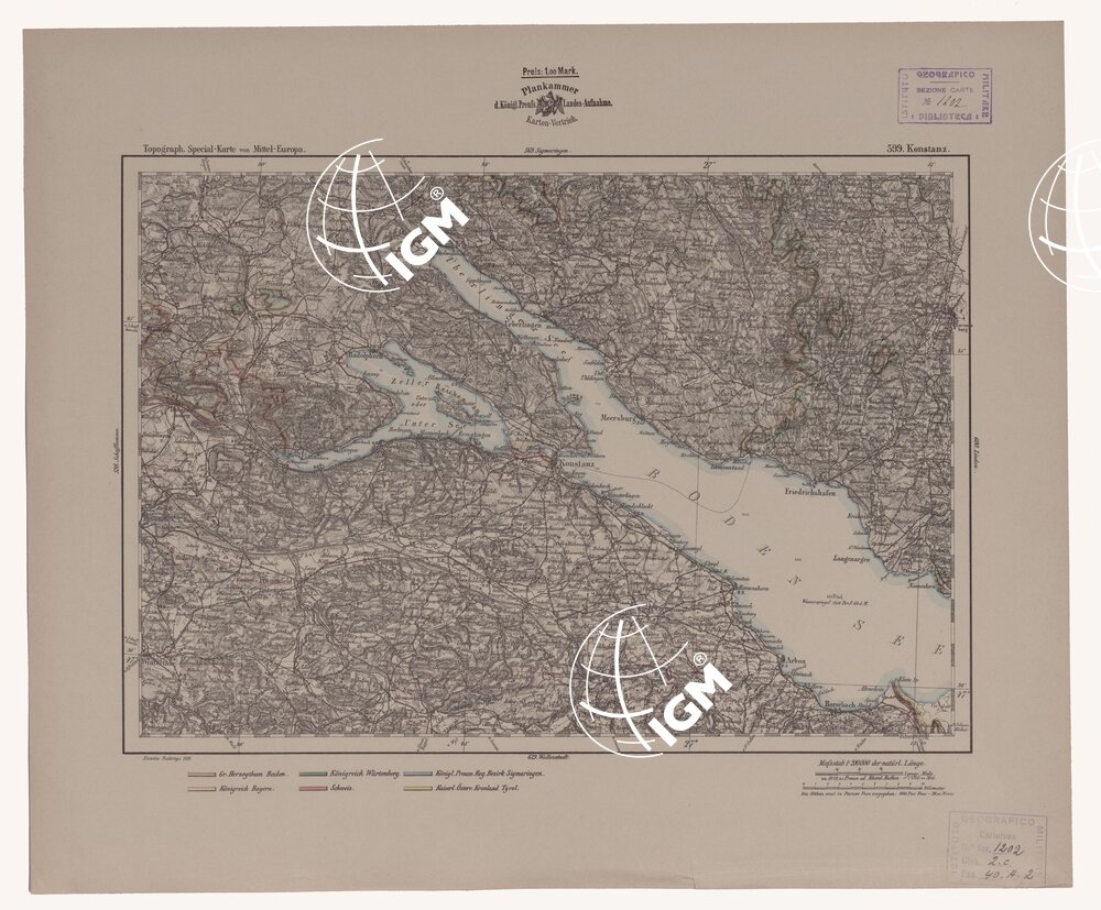 Autore Reymann, luogo di edizione Berlino. Rappresentazione orografica a tratteggio. Tipo in nero colorato a mano.