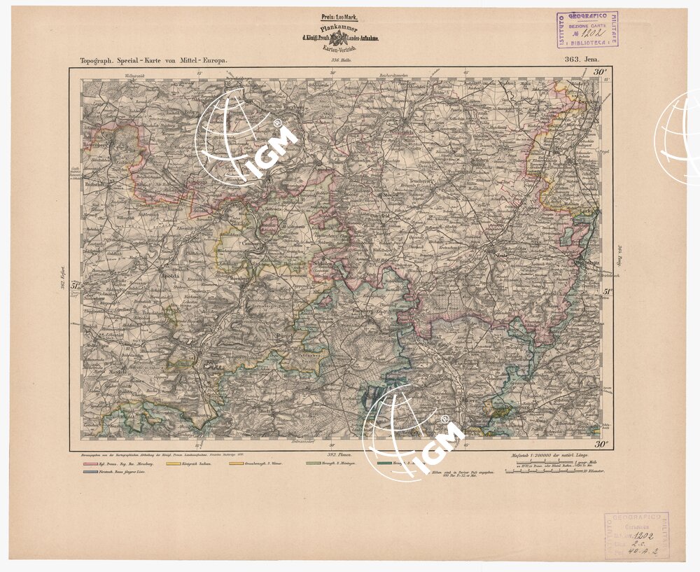 Autore Reymann, luogo di edizione Berlino. Rappresentazione orografica a tratteggio. Tipo in nero colorato a mano.