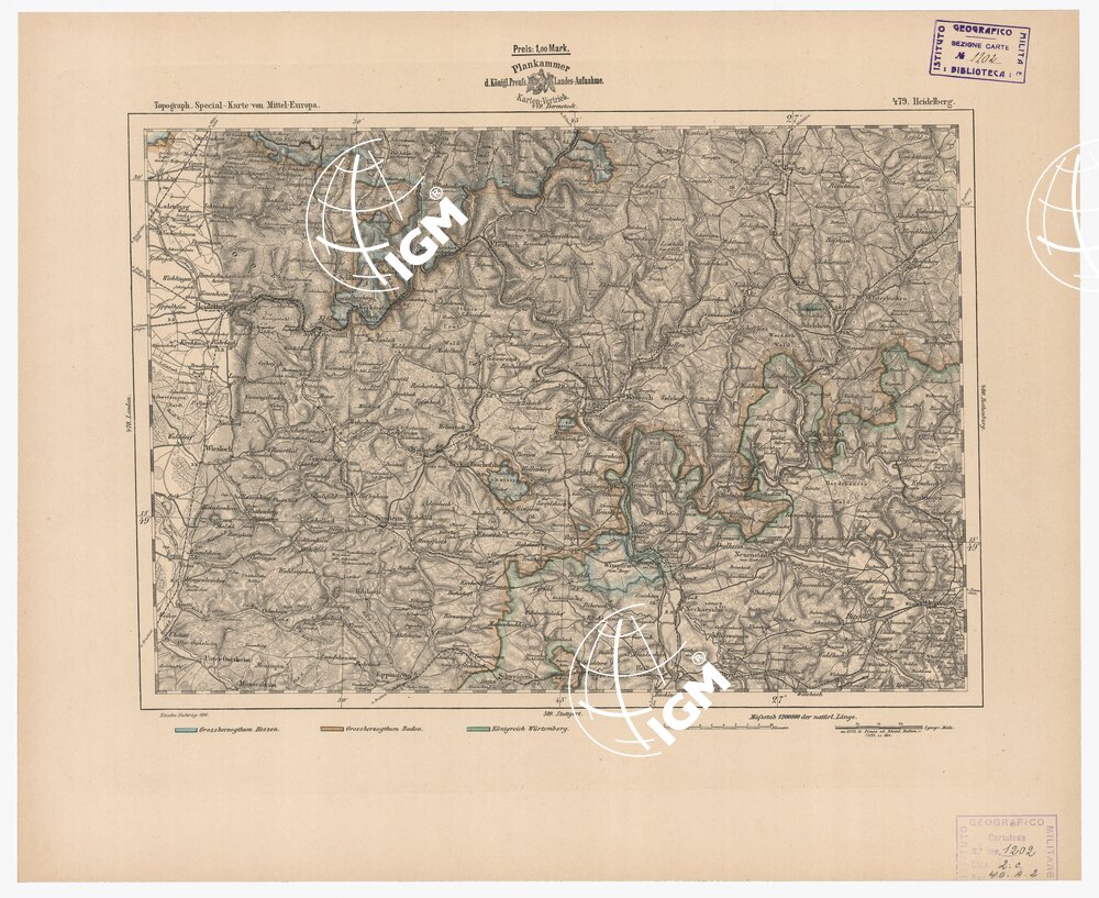 Autore Reymann, luogo di edizione Berlino. Rappresentazione orografica a tratteggio. Tipo in nero colorato a mano.
