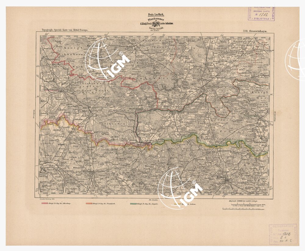 Autore Reymann, luogo di edizione Berlino. Rappresentazione orografica a tratteggio. Tipo in nero colorato a mano.