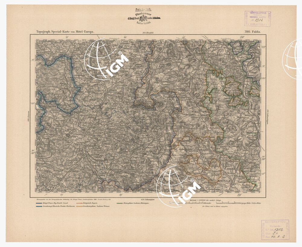 Autore Reymann, luogo di edizione Berlino. Rappresentazione orografica a tratteggio. Tipo in nero colorato a mano.