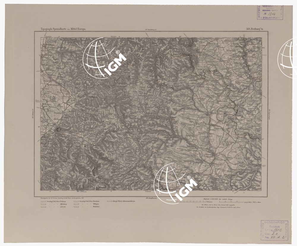 Autore Reymann, luogo di edizione Berlino. Rappresentazione orografica a tratteggio. Tipo in nero colorato a mano.