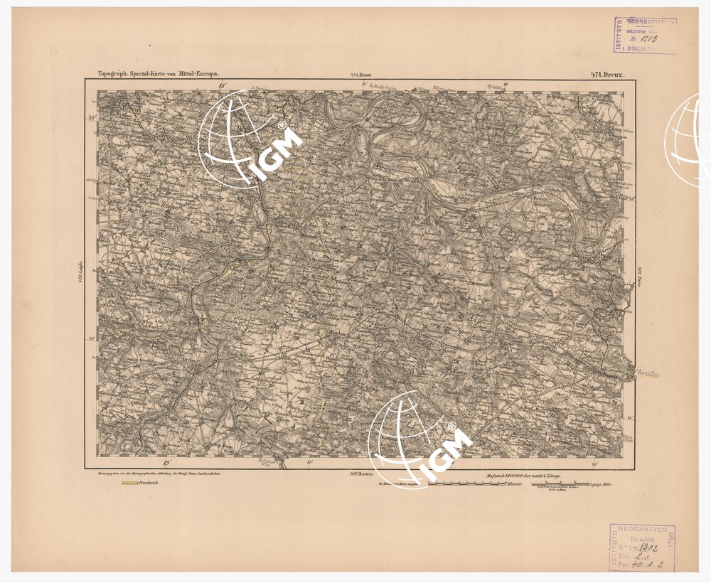 Autore Reymann, luogo di edizione Berlino. Rappresentazione orografica a tratteggio. Tipo in nero colorato a mano.