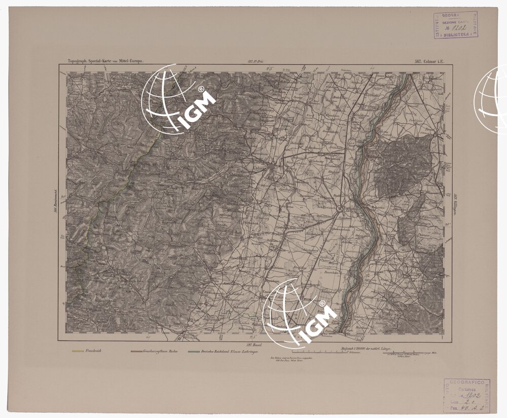 Autore Reymann, luogo di edizione Berlino. Rappresentazione orografica a tratteggio. Tipo in nero colorato a mano.