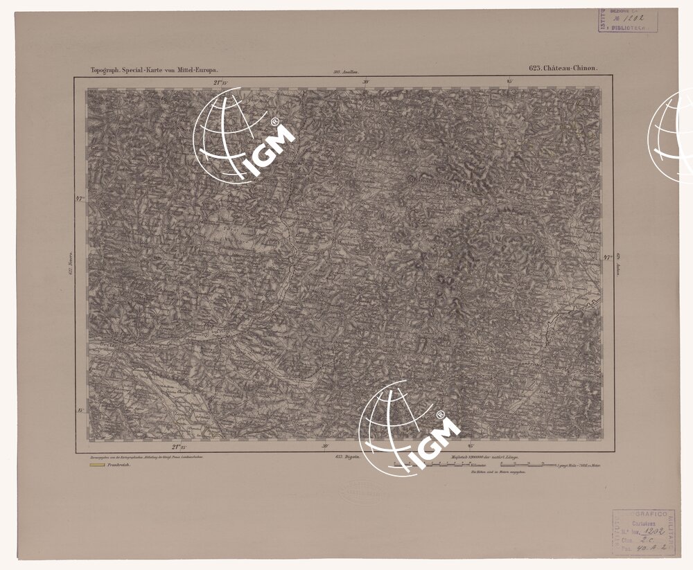 Autore Reymann, luogo di edizione Berlino. Rappresentazione orografica a tratteggio. Tipo in nero colorato a mano.