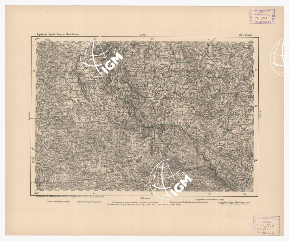 Autore Reymann, luogo di edizione Berlino. Rappresentazione orografica a tratteggio. Tipo in nero colorato a mano.