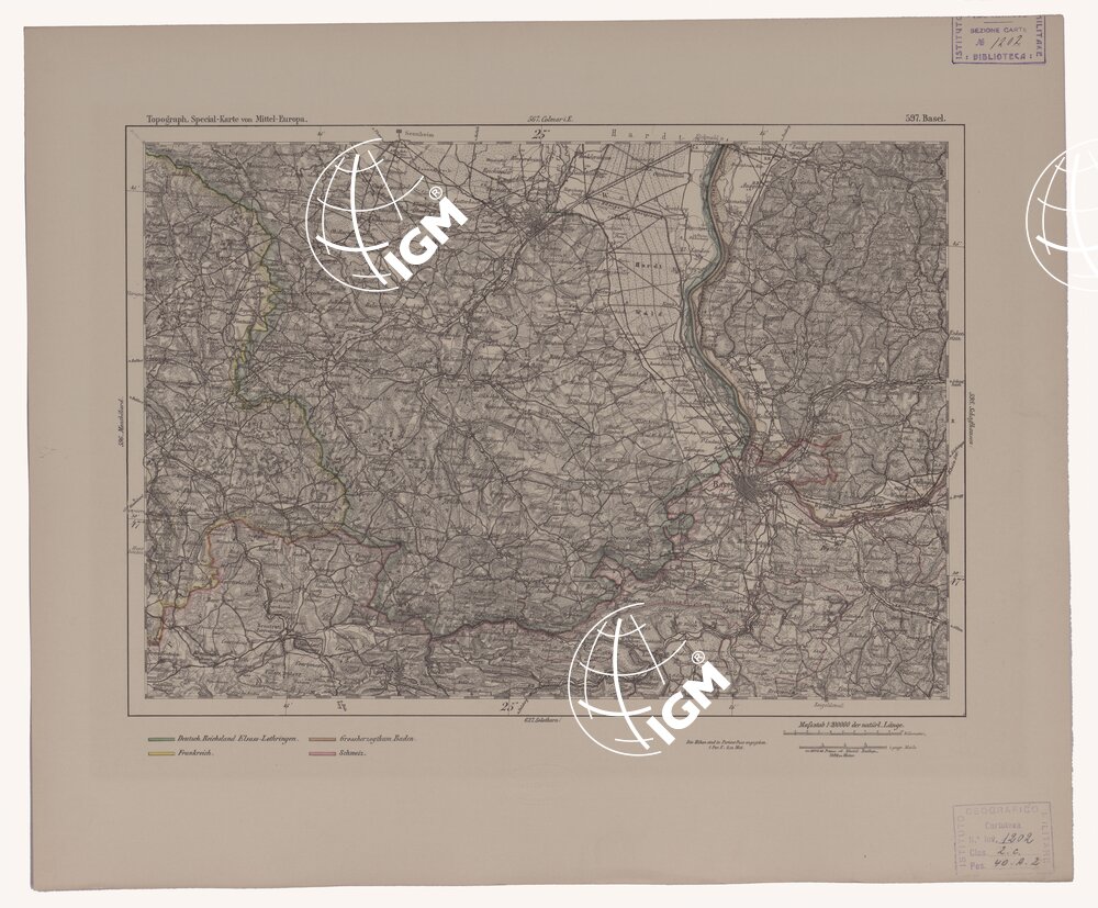 Autore Reymann, luogo di edizione Berlino. Rappresentazione orografica a tratteggio. Tipo in nero colorato a mano.