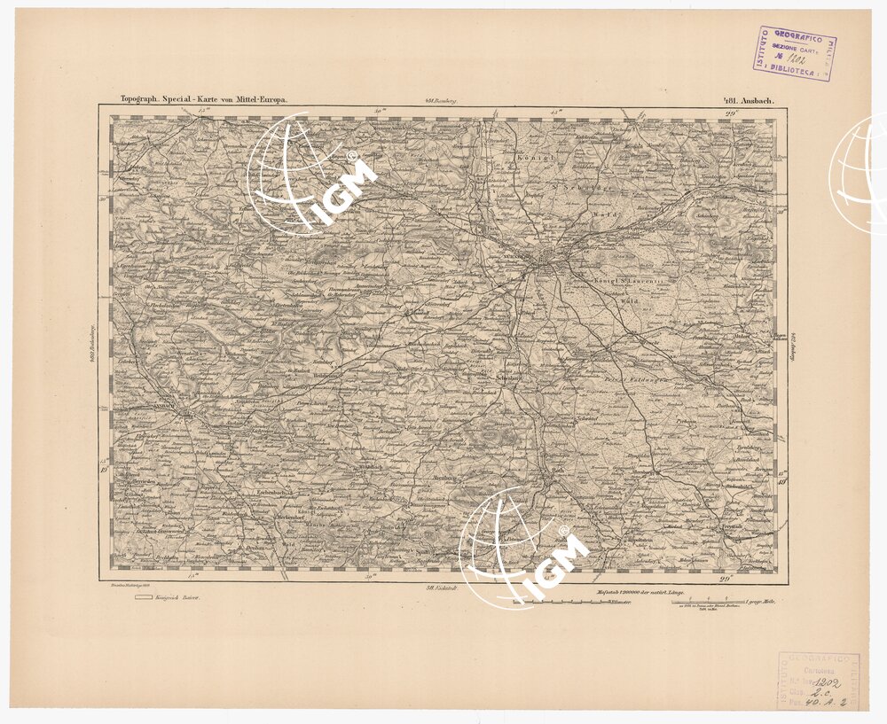 Autore Reymann, luogo di edizione Berlino. Rappresentazione orografica a tratteggio. Tipo in nero colorato a mano.