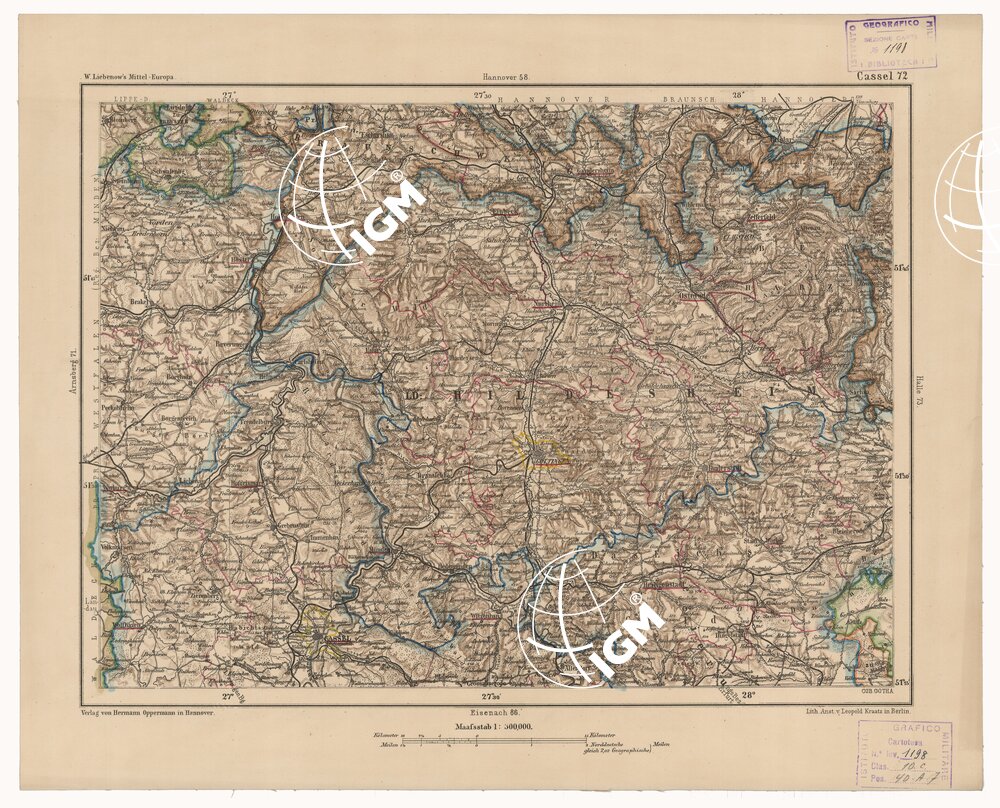 Rappresentazione orografica. Grafia in lingua tedesca. Edizione eluogo di edizione Hannover. Autore: Liebewnow.