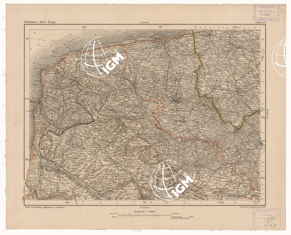 Rappresentazione orografica. Grafia in lingua tedesca. Edizione eluogo di edizione Hannover. Autore: Liebewnow.