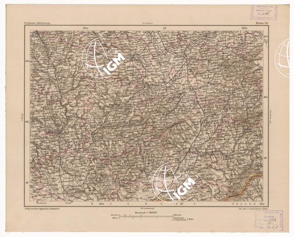 Rappresentazione orografica. Grafia in lingua tedesca. Edizione eluogo di edizione Hannover. Autore: Liebewnow.