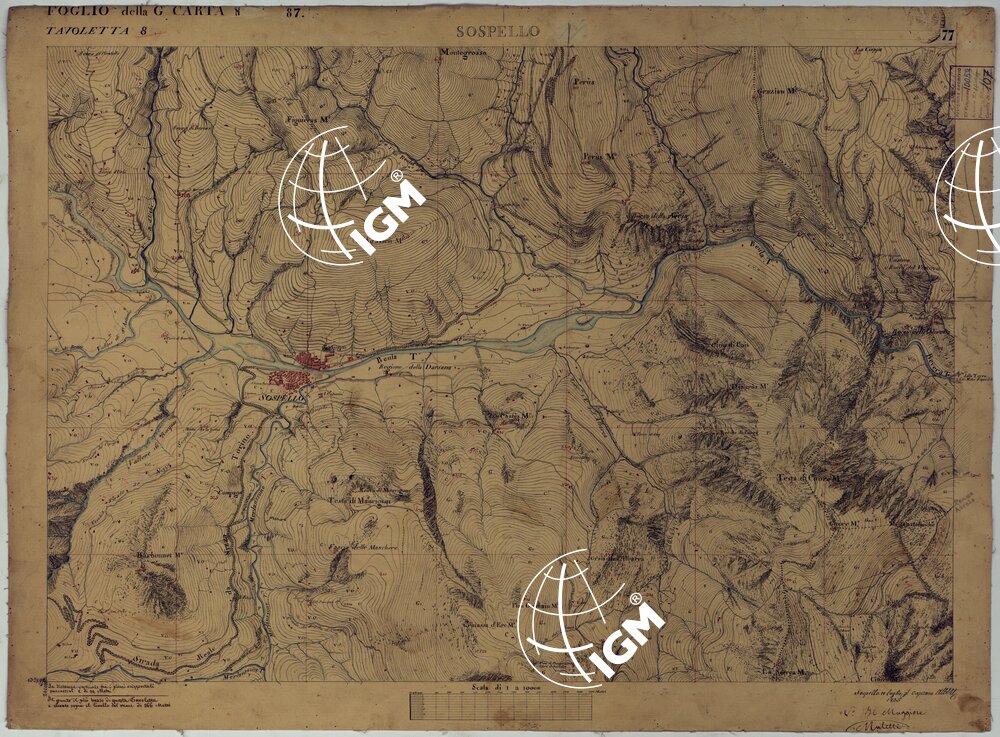Rilievo regolare in 99 tavolette (minute di campagna) del territorio della Contea di Nizza. Il rilievo è dimostrato a curve orizzontali, tracciate all’equidistanza di 10 metri. Gli operatori furono ufficiali di armi diverse, probabilmente allievi della Scuola di S. M. : Avet, Albert, Borson, Basso, Bergalli, Costanze, Cordon, Ceva, Colli, Carderina, Cordero, Coda, Di Pralormo, Dal Pozzo, De Fornari, De Candia, D’Angennes, Escoffier, Federici, Falicon, Govone, La Grange, La Fleche, Muletti, Marazzano, Mazè, Morozzo, Mariani, Pictet, Ponzani, Piola Caselle, Righini, Rinaudo, Ricci, S. Andrea, Somis, Villamarina.
