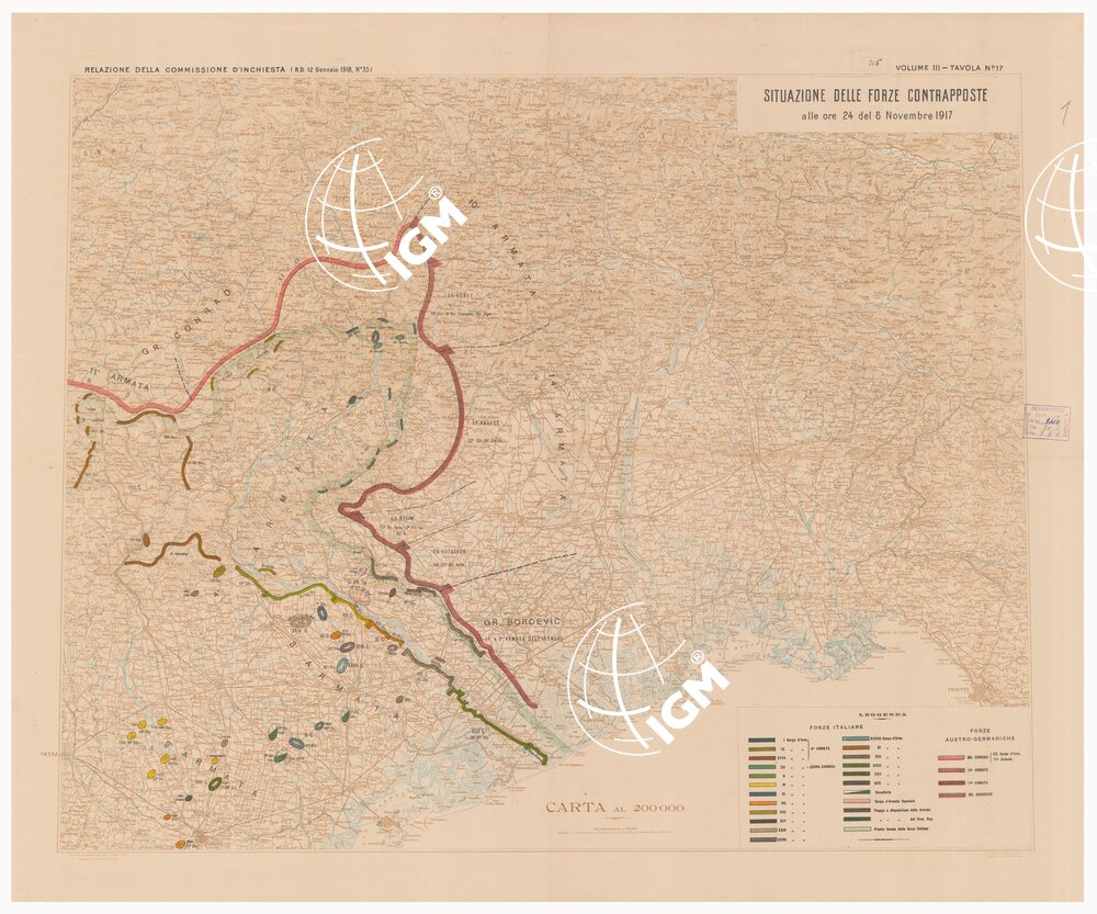 SITUAZIONE DELLE FORZE CONTRAPPOSTE DAL 23 OTTOBRE AL 9 NOVEMBRE DEL 1917 – Volume III Tavola 17