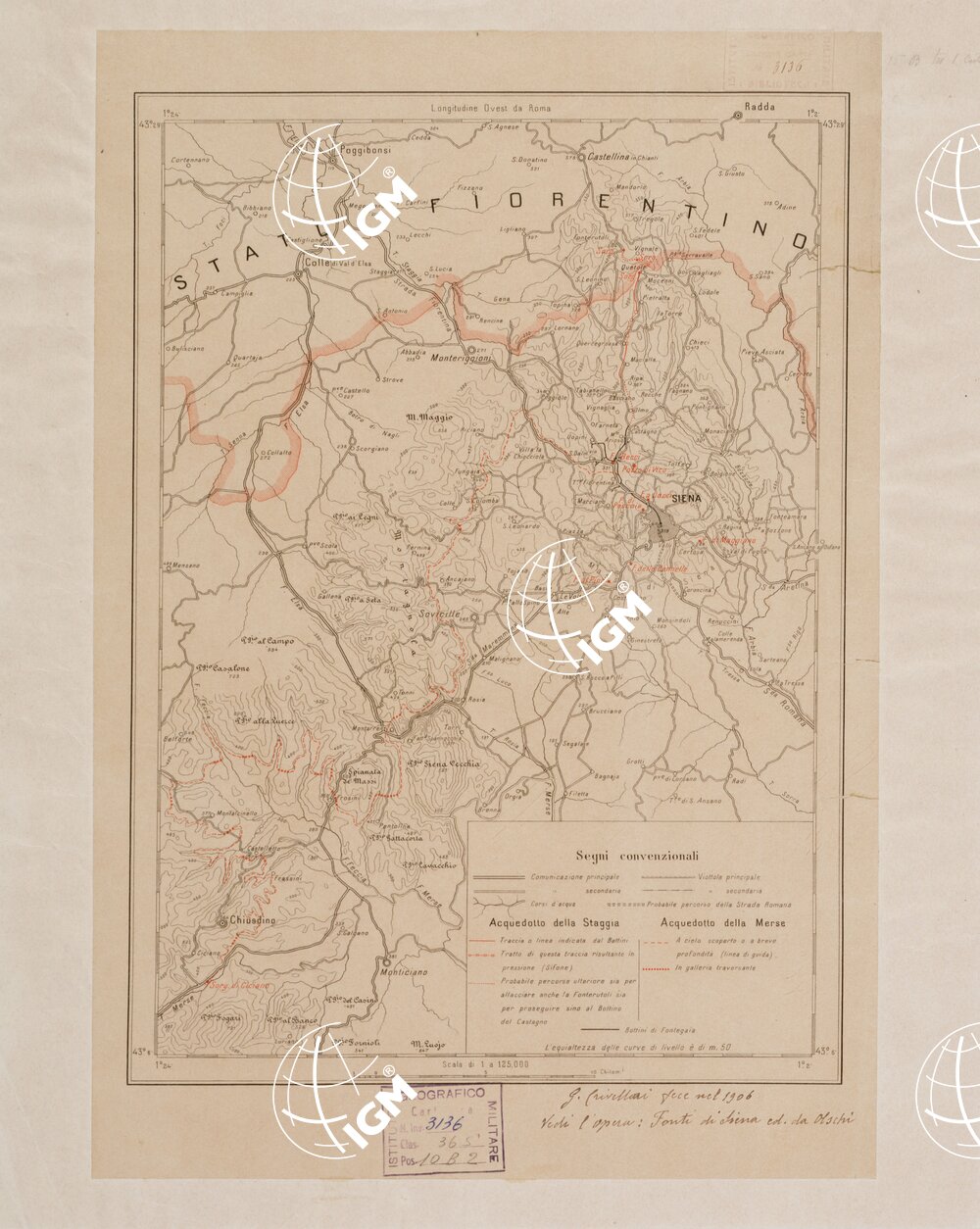 SIENA E DINTORNI, TRACCIATO DEGLI ACQUEDOTTI DELLA STAGGIA E DEL MERSE NEL TERRITORIO SENESE