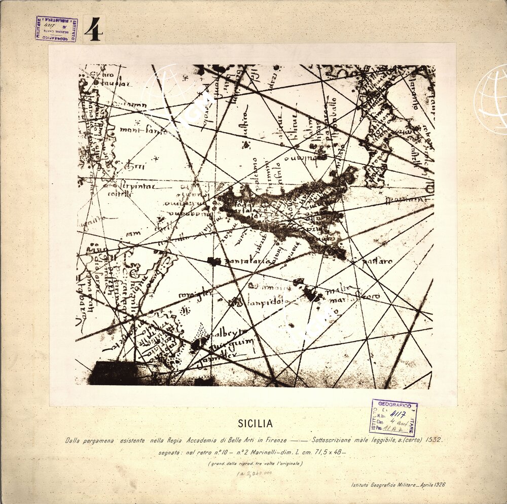 Dalla pergamena esistente nella Regia Accademia di Belle Arti in Firenze. Sottoscrizione male leggibile, a. (certo) 1532. Segnata: nel retro n. 10, n. 2 Marinelli, dim. l. cm. 71,5×48 (grand. della riprod. tre volte l’originale). La scala è scritta a lapis. I.G.M. (FI).