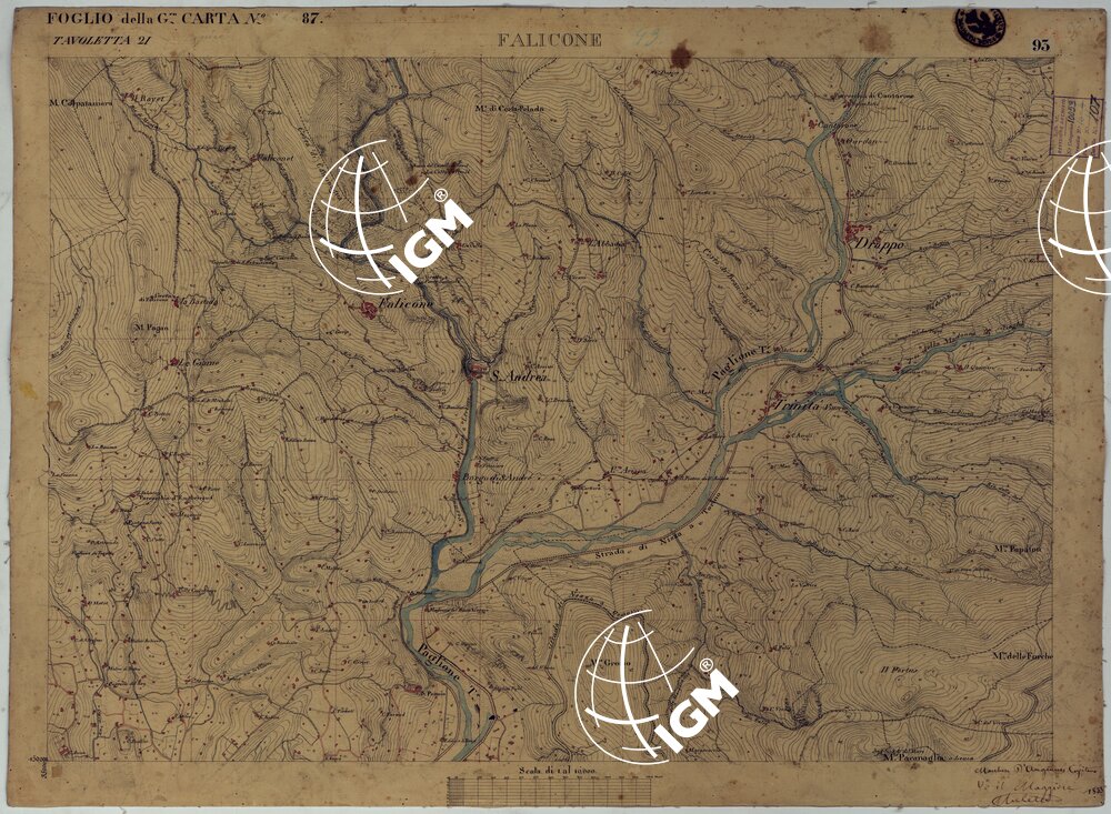 Rilievo regolare in 99 tavolette (minute di campagna) del territorio della Contea di Nizza. Il rilievo è dimostrato a curve orizzontali, tracciate all’equidistanza di 10 metri. Gli operatori furono ufficiali di armi diverse, probabilmente allievi della Scuola di S. M. : Avet, Albert, Borson, Basso, Bergalli, Costanze, Cordon, Ceva, Colli, Carderina, Cordero, Coda, Di Pralormo, Dal Pozzo, De Fornari, De Candia, D’Angennes, Escoffier, Federici, Falicon, Govone, La Grange, La Fleche, Muletti, Marazzano, Mazè, Morozzo, Mariani, Pictet, Ponzani, Piola Caselle, Righini, Rinaudo, Ricci, S. Andrea, Somis, Villamarina.
