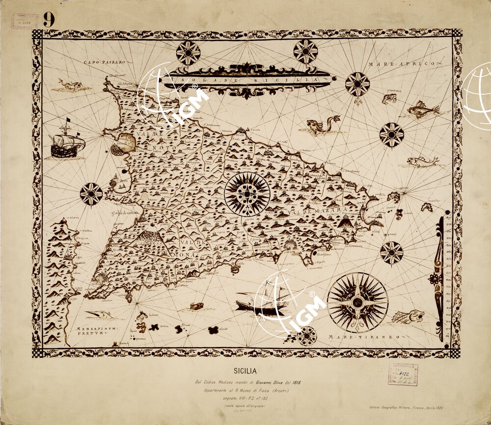 Dal “Codice Mediceo membranoso” di Giovanni Oliva del 1616, appartenente al R. Museo di Fisica (Arcetri) segnato: VIII, P. 2, n.° 182 (scala eguale all’originale). La scala è scritta a lapis; I.G.M. (FI).