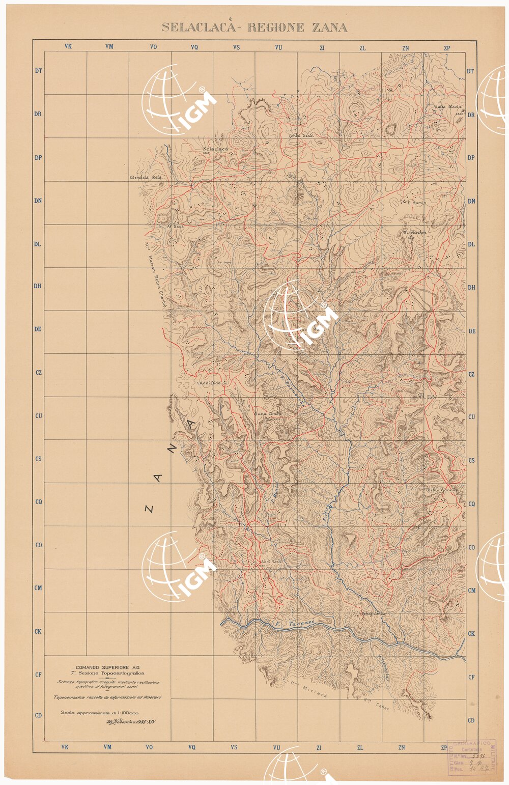 Comando Superiore A. O. Settima sezione Topocartografica. Schizzo topografico eseguito mediante restituzione speditiva di fotogrammi aerei. Toponomastica raccolta da informazioni ed itinerari.