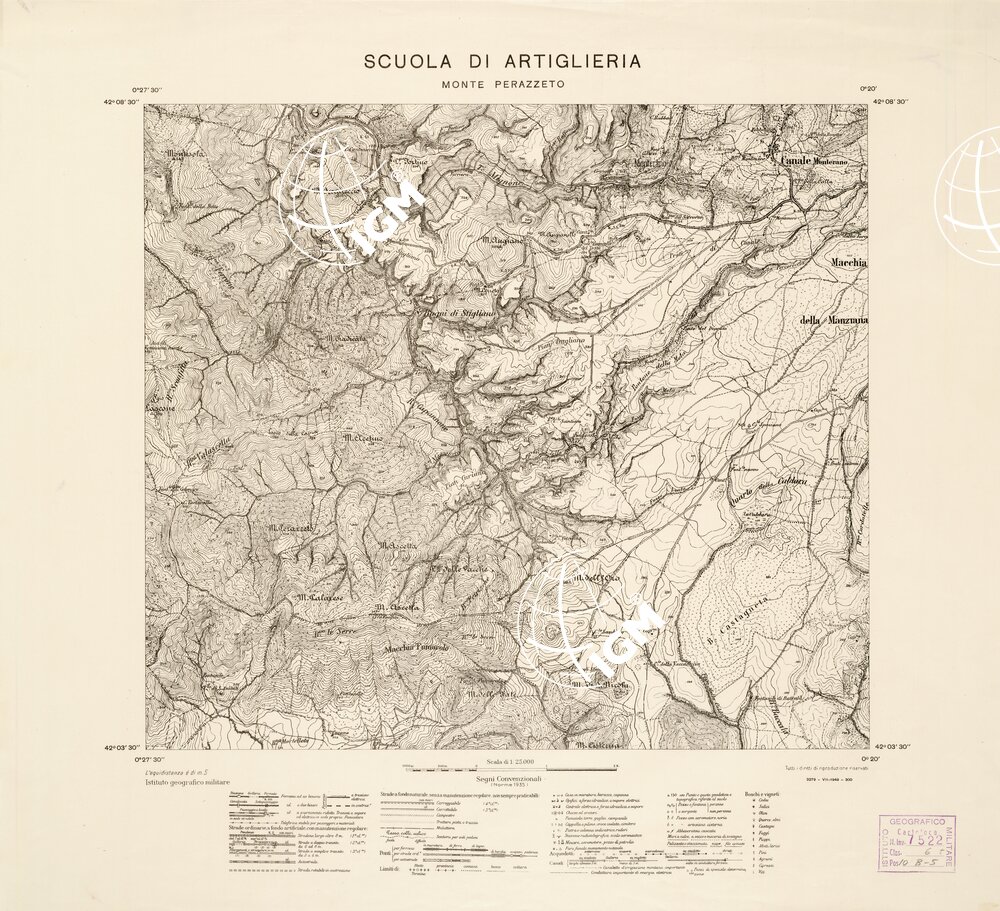 Autore I.G.M., luogo di edizione Firenze. Rappresentazione orografica a curve di livello.
