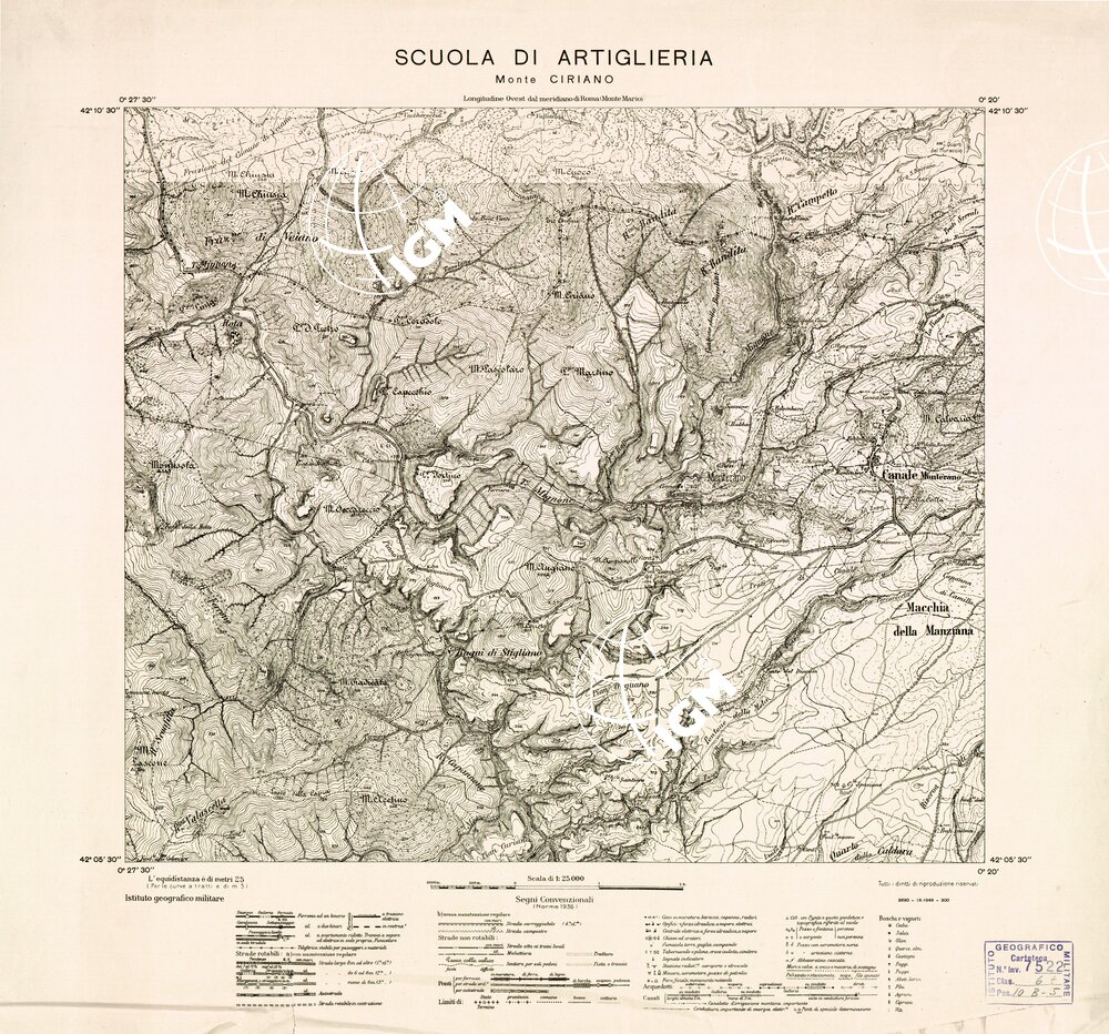Autore I.G.M., luogo di edizione Firenze. Rappresentazione orografica a curve di livello.