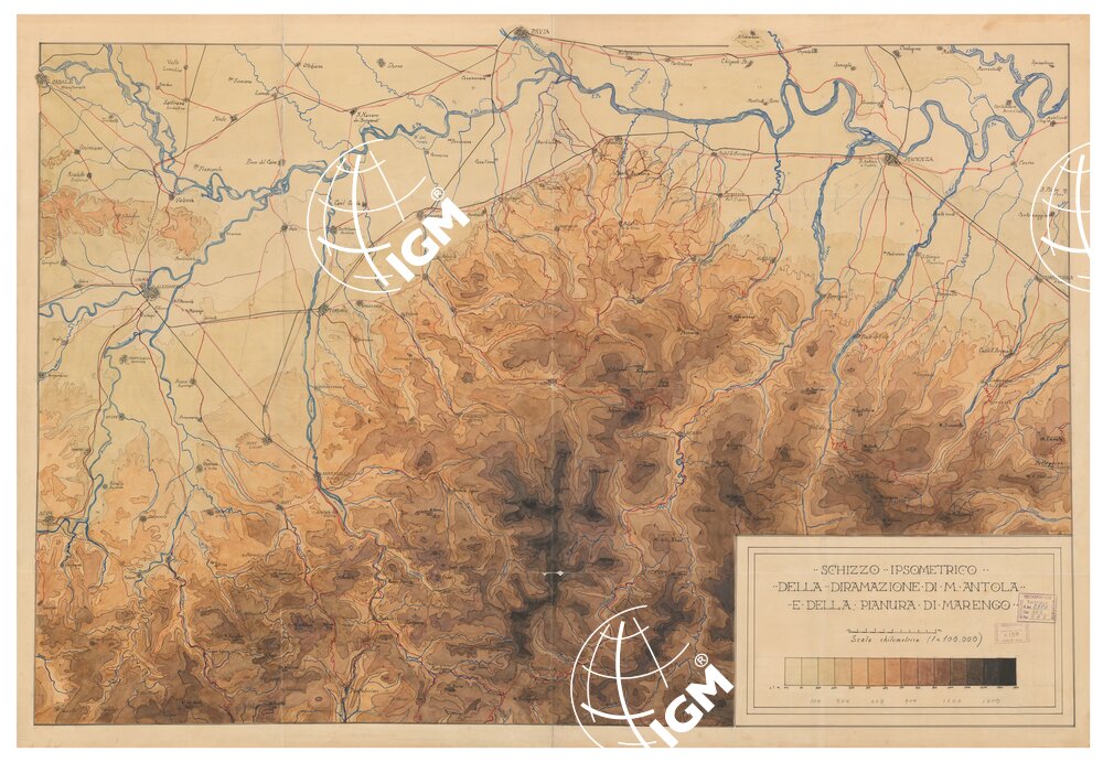 Rappresentazione orografica a tinte ipsometriche. In basso a destra sotto il titolo è presente la classificazione delle tinte.