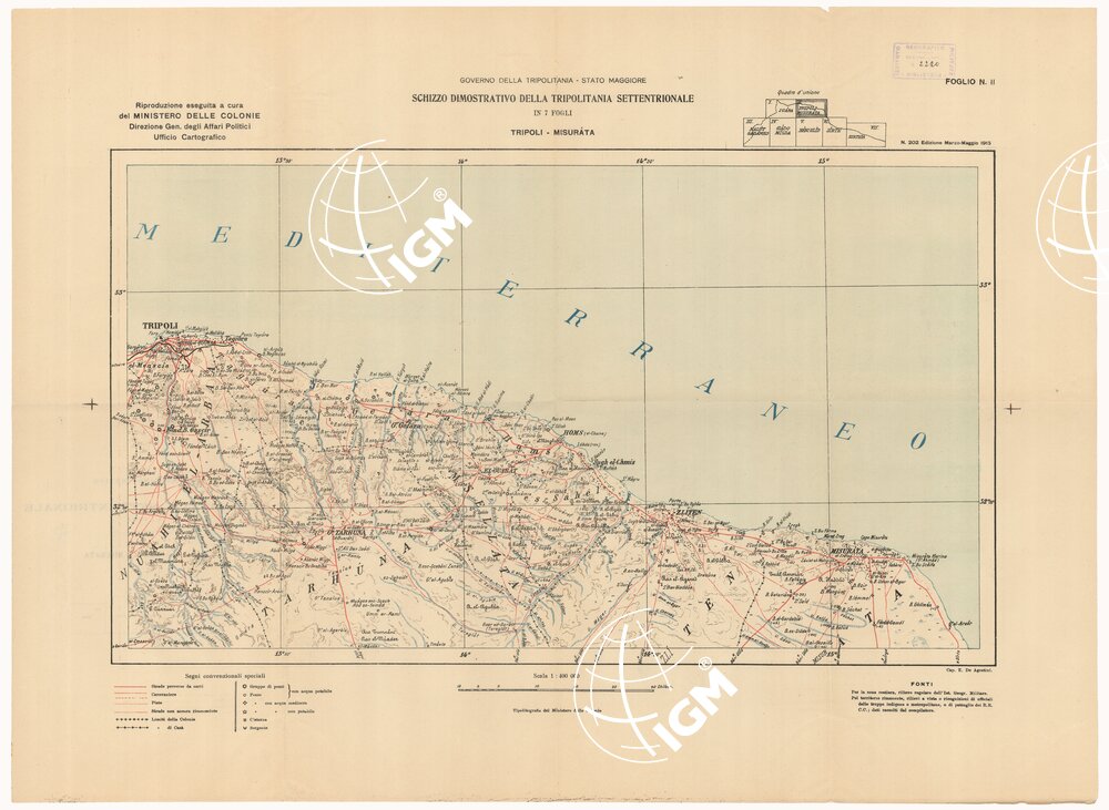 SCHIZZO DIMOSTRATIVO DELLA TRIPOLITANIA SETTENTRIONALE – Foglio II TRIPOLI – MISURATA