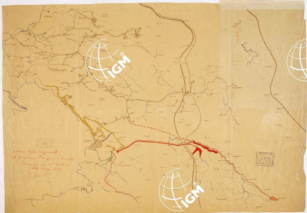 SCHEMA DEGLI ACQUEDOTTI CHE FORNISCONO L’ACQUA A TRIESTE – Carta