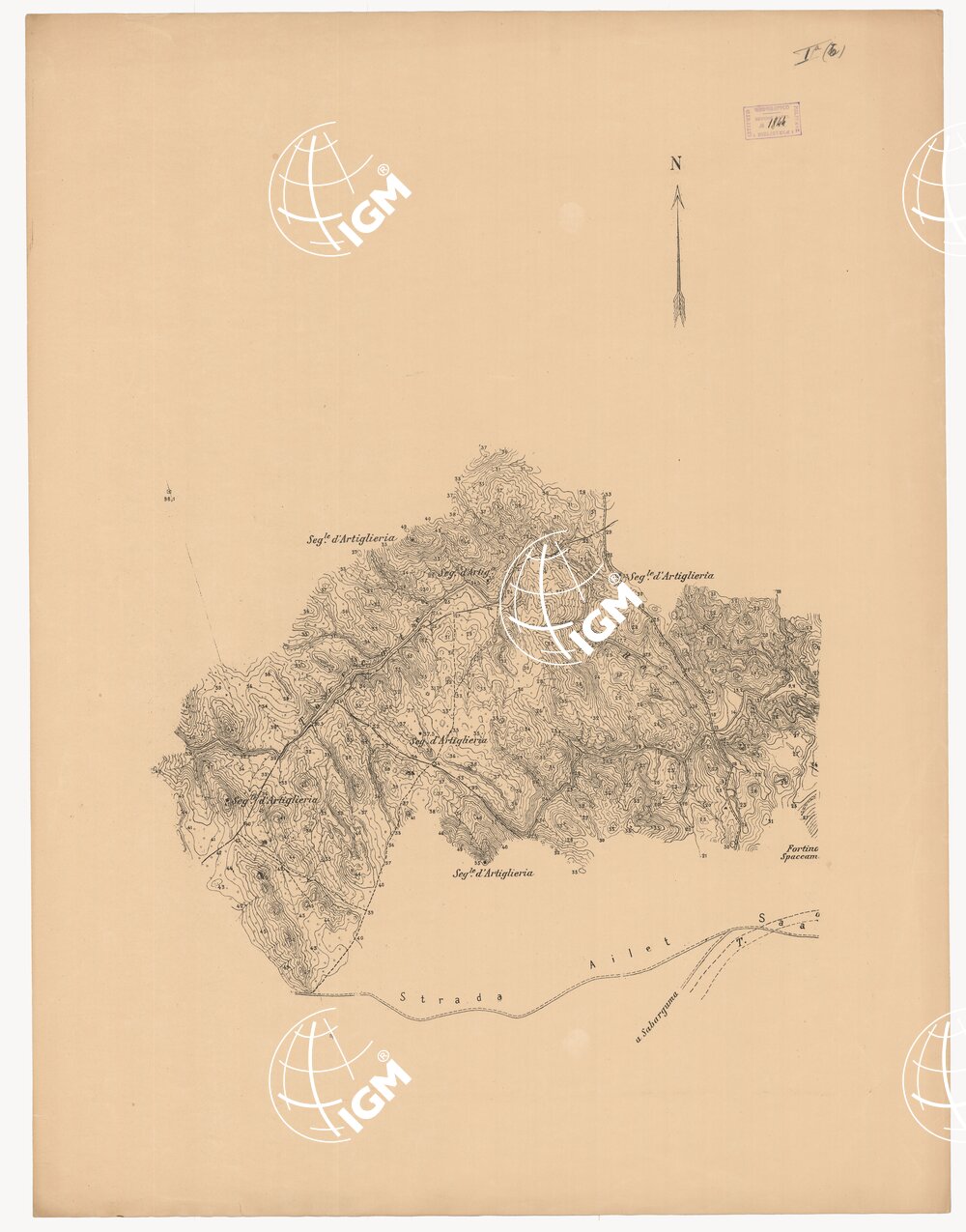 Cinque tavolette rilevate dal top. Savoca nel 1890 e 1891. Esse comprendono la zona adiacente alla gola d’Ailet. Il rilievo orografico è rappresentato con curve di livello tracciate all’equidistanza di 1 m. Le quote altimetriche sono riferite al caposaldo della ferrovia presso la stazione di Saati situata a 140 m. sul livello del mare e quotato 0. Il foglio III contiene un quadro d’unione alla scala di 1:50.000. Le tavolette servirono ad un ingrandimento meccanico riprodotto in fotolito alla scala di 1:2.500 richiesto dal Comandante della Colonia Eritrea per servire allo studio della continuazione della ferrovia Ailet.