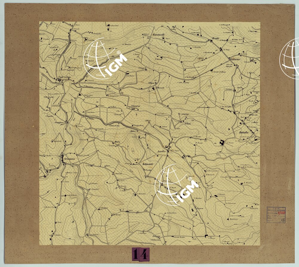 Sei fogli, ingrandimento meccanico dei rilievi eseguiti alla scala 1:25.000 nel 1875-76, sotto la direzione del Top. Moretti dell’Ist. Geogr. Mil. Orografia a curve di livello tracciate all’equidistanza di m. 10.