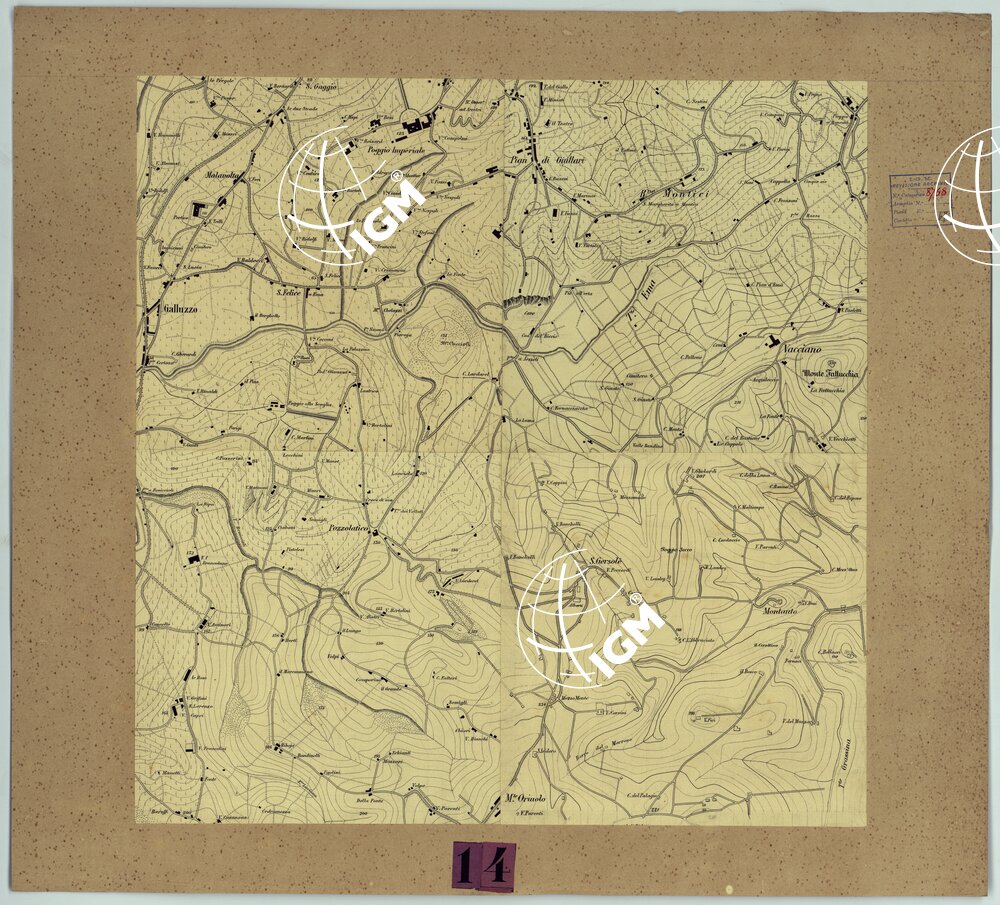 Cfr. anche: Carta di Firenze e dintorni alla scala di 1:7.500 (Inv. n. 4770), Dintorni di Firenze (Cart. d’Arch. 66 – Docum. 5), Firenze e dintorni (Cart. d’Arch. 66 – Docum. 6).