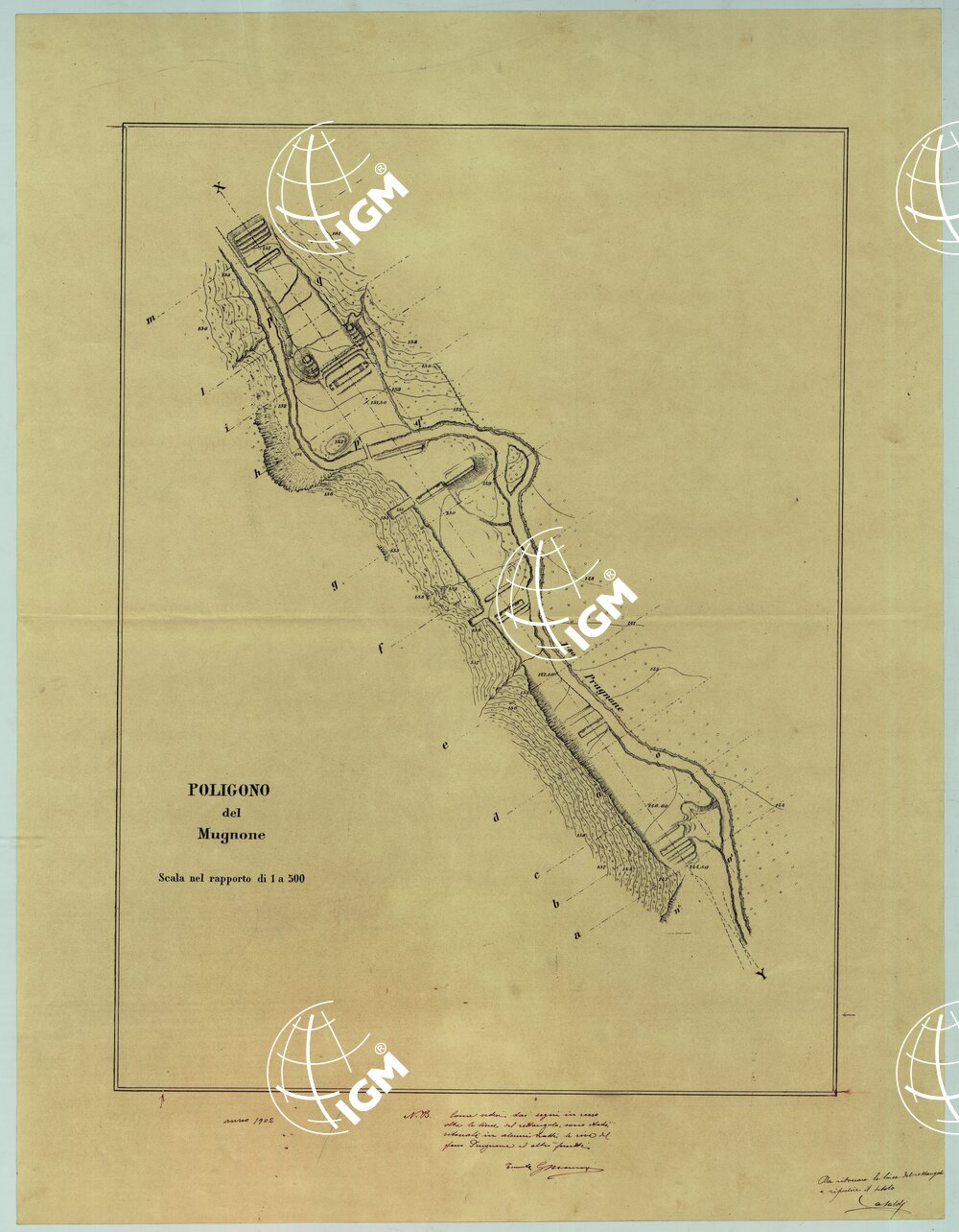 Scala nel rapporto di 1:500. Data manoscritta 1902. Stampa in nero con correzioni manoscritte.