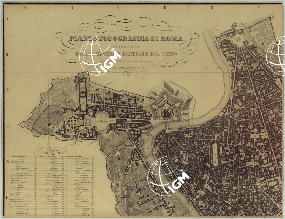 PIANTA TOPOGRAFICA DI ROMA PUBBLICATA DALLA DIREZIONE GENERALE DEL CENSO ED AGGIORNATA A TUTTO IL CORRENTE ANNO MDCCCLXVI – FOGLIO 1. 1