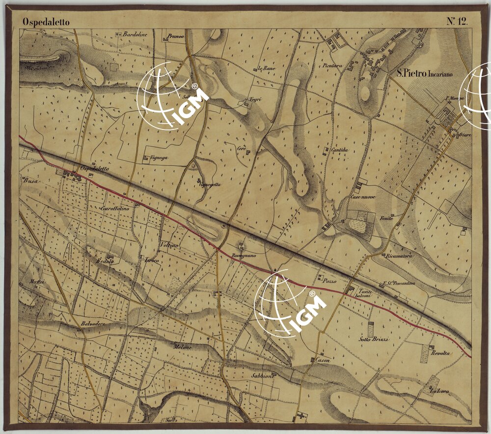 | Titolo proprio | CARTA DEI DINTORNI DI RIVOLI E PASTRENGO ALLA SCALA DI 1 AL 10.000 – FOGLIO 12 OSPEDALETTO |