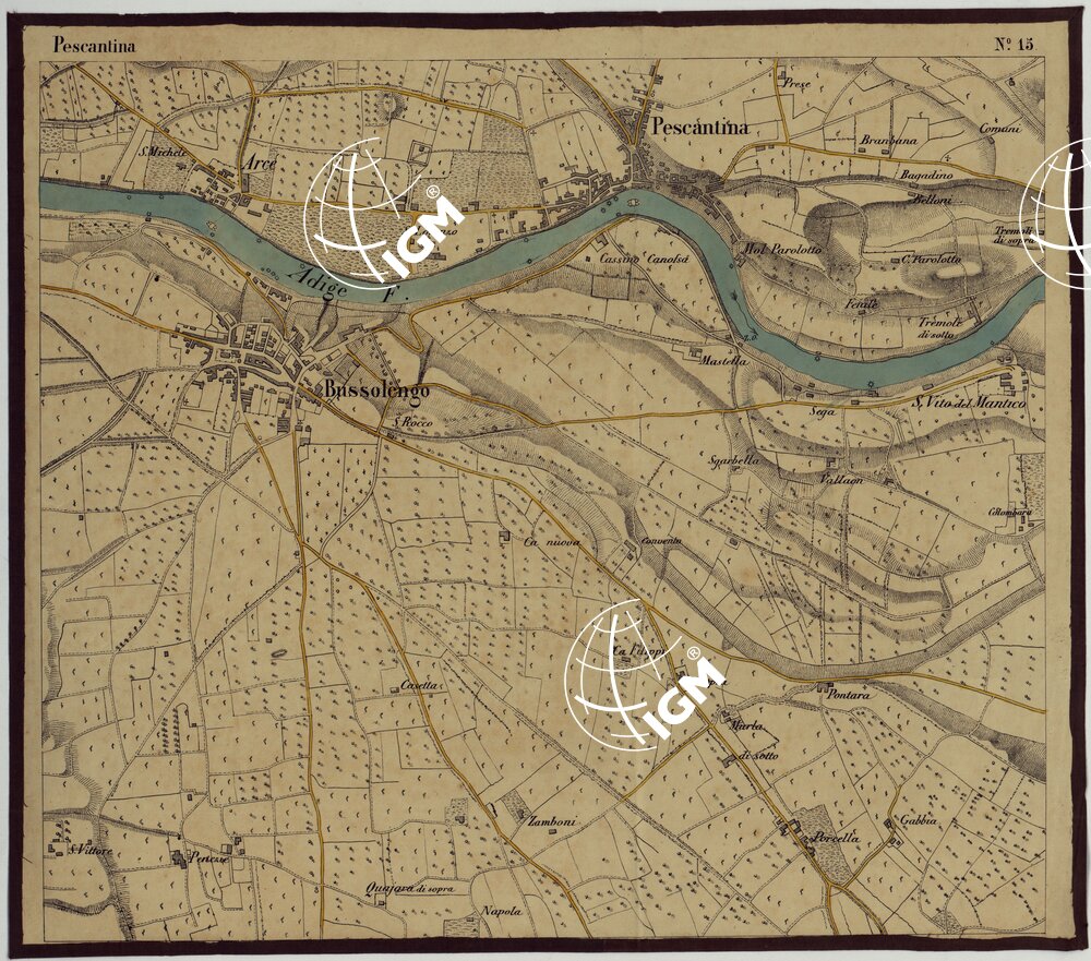 | Titolo proprio | CARTA DEI DINTORNI DI RIVOLI E PASTRENGO ALLA SCALA DI 1 AL 10.000 – FOGLIO 15 PESCANTINA |