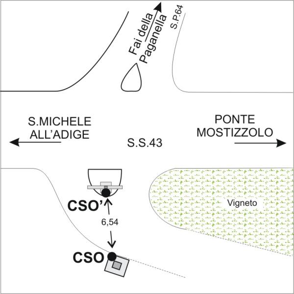 | Contrassegni | [{"simbolo_contrassegno":"B7","materializzazione":"(CSO) – Centrino orizzontale (tipo universale PAT) infisso alla sommit\u00e0 della soletta del tombino in prossimit\u00e0 della croce."},{"simbolo_contrassegno":"B3","materializzazione":"(CSO') – Cricolo inciso sul basamento della croce nel lato Nord-ESt."}] |
