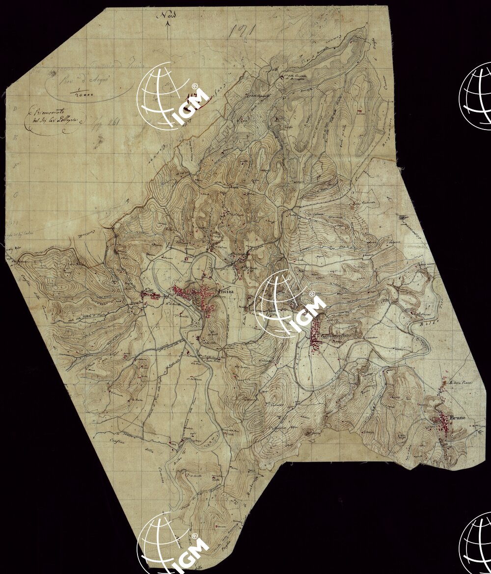 Gruppo di 142 minute di campagna, e un quadro d’unione, in fogli irregolari, alcuni con degli spezzoni allegati, montati su tela. L’orografia vi è rappresentata variamente talvolta con curve dimostrative e tratteggio, oppure con sfumo a luce obliqua e tratteggio o con sfumo e curve dimostrative. Gli abitati sono colorati in rosso; le acque in azzurro.