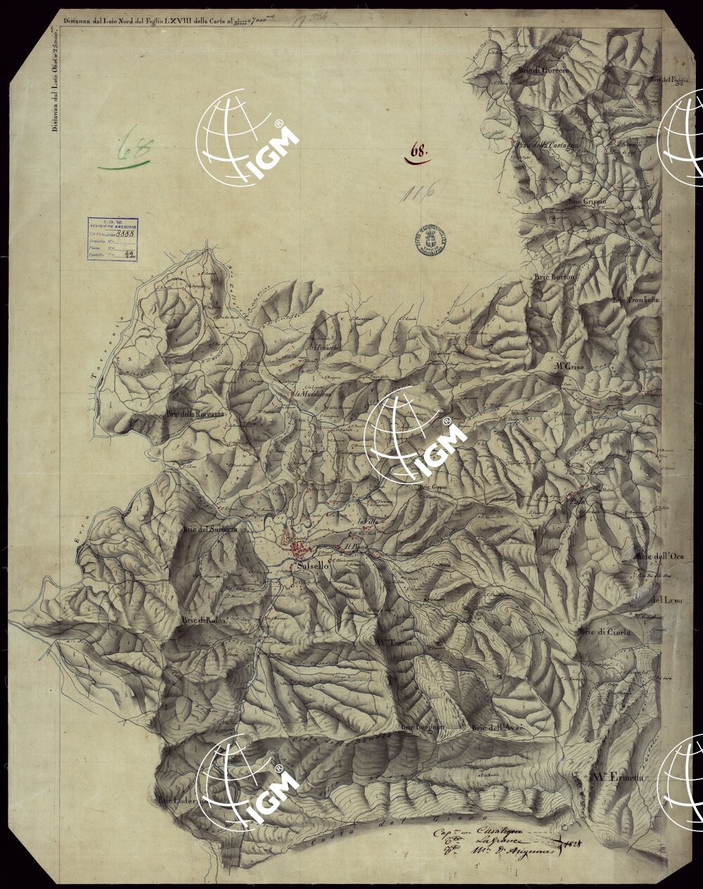 RICOGNIZIONI ESEGUITE ALLA SCALA DI 1/20.000 CHE COMPRENDANO LE DUE RIVIERE DEGLI EX STATI SARDI E PARTE DELLE ATTUALI PROVINCIE DI ALESSANDRIA E DI PAVIA – FOGLIO 68.