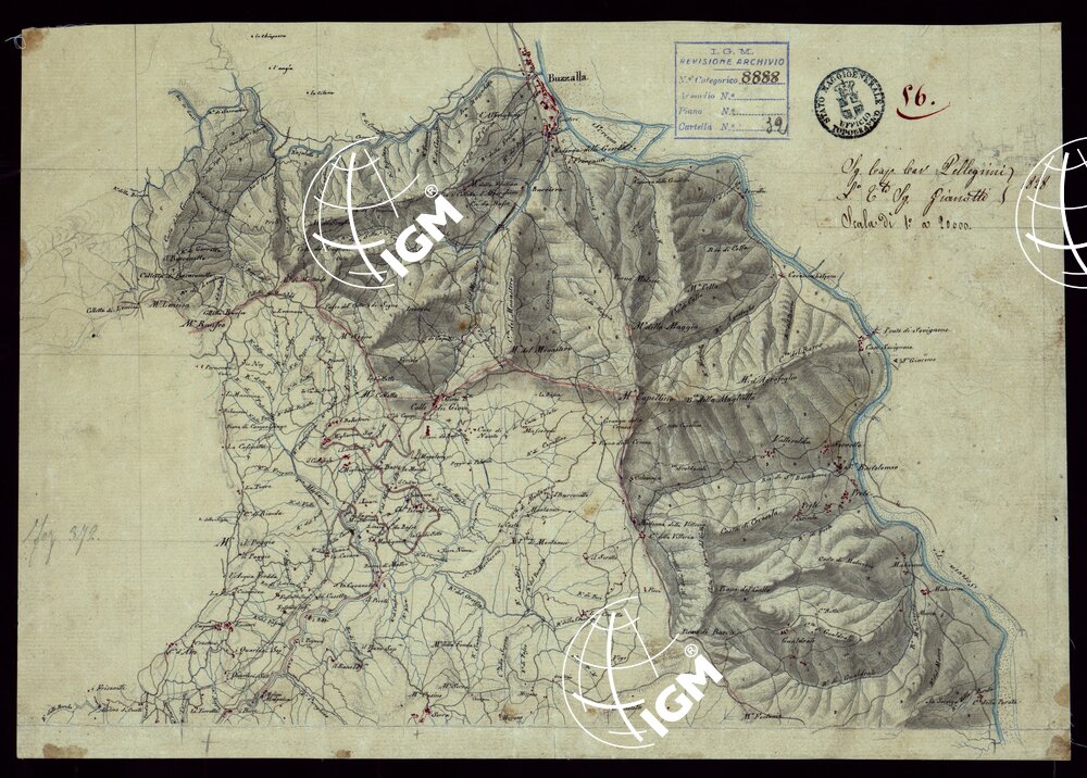 Gruppo di 142 minute di campagna, e un quadro d’unione, in fogli irregolari, alcuni con degli spezzoni allegati, montati su tela. L’orografia vi è rappresentata variamente talvolta con curve dimostrative e tratteggio, oppure con sfumo a luce obliqua e tratteggio o con sfumo e curve dimostrative. Gli abitati sono colorati in rosso; le acque in azzurro.