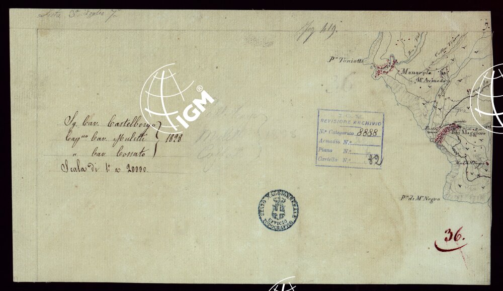 RICOGNIZIONI ESEGUITE ALLA SCALA DI 1/20.000 CHE COMPRENDANO LE DUE RIVIERE DEGLI EX STATI SARDI E PARTE DELLE ATTUALI PROVINCIE DI ALESSANDRIA E DI PAVIA – FOGLIO 36.