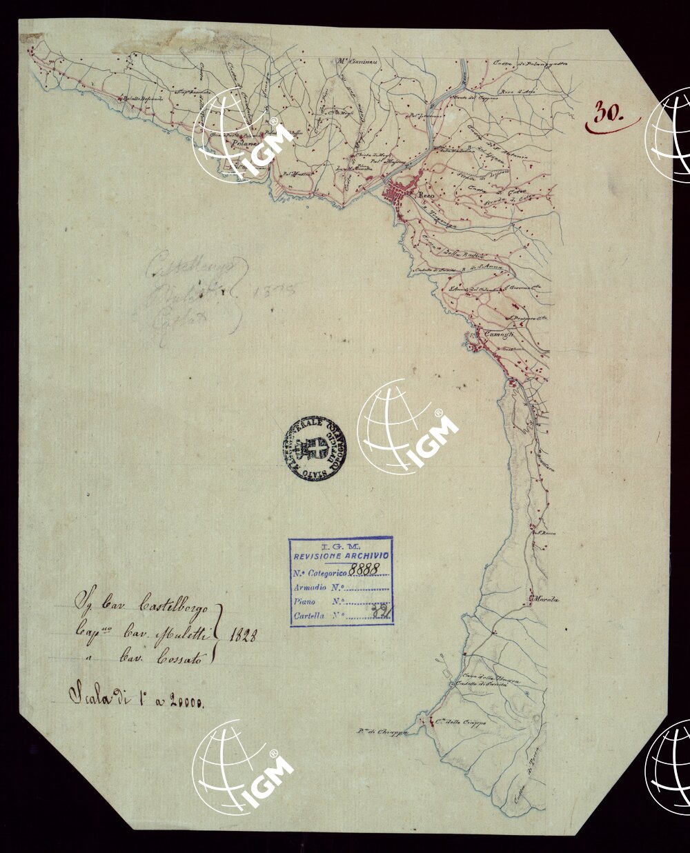 RICOGNIZIONI ESEGUITE ALLA SCALA DI 1/20.000 CHE COMPRENDANO LE DUE RIVIERE DEGLI EX STATI SARDI E PARTE DELLE ATTUALI PROVINCIE DI ALESSANDRIA E DI PAVIA – FOGLIO 30.