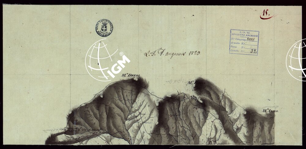 Gruppo di 142 minute di campagna, e un quadro d’unione, in fogli irregolari, alcuni con degli spezzoni allegati, montati su tela. L’orografia vi è rappresentata variamente talvolta con curve dimostrative e tratteggio, oppure con sfumo a luce obliqua e tratteggio o con sfumo e curve dimostrative. Gli abitati sono colorati in rosso; le acque in azzurro.