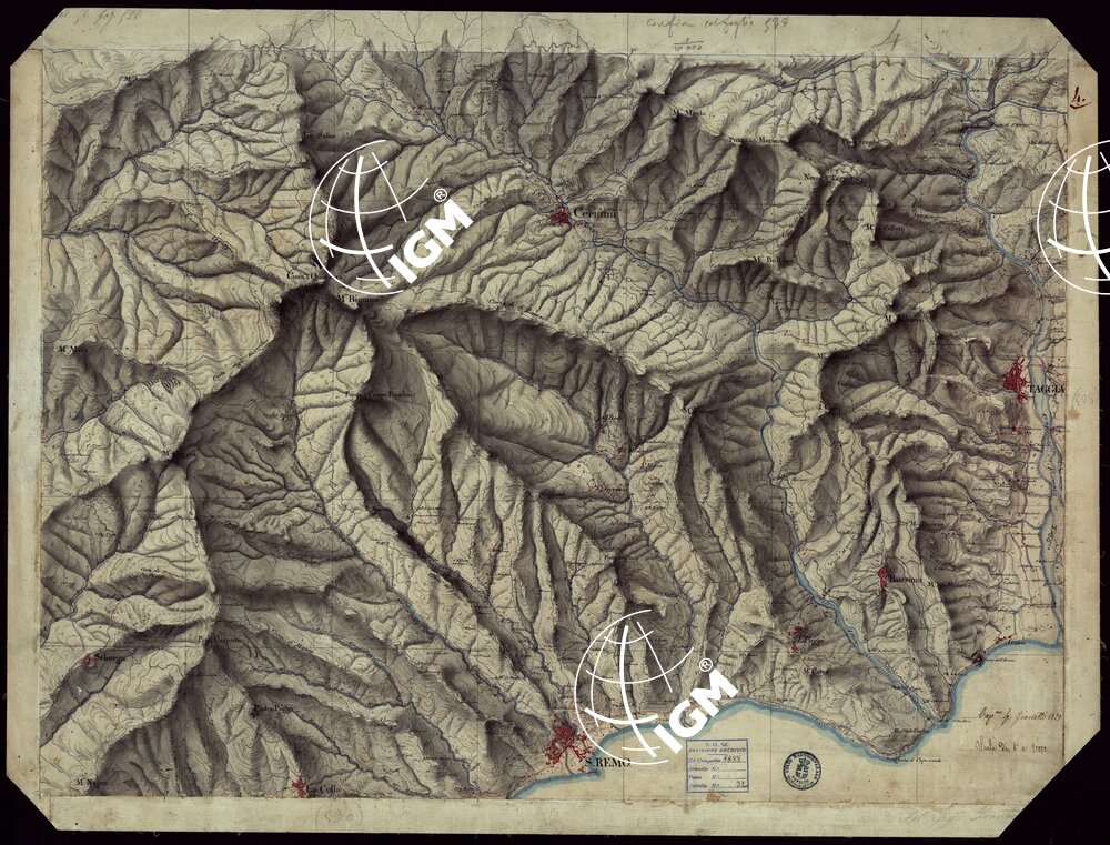 Gruppo di 142 minute di campagna, e un quadro d’unione, in fogli irregolari, alcuni con degli spezzoni allegati, montati su tela. L’orografia vi è rappresentata variamente talvolta con curve dimostrative e tratteggio, oppure con sfumo a luce obliqua e tratteggio o con sfumo e curve dimostrative. Gli abitati sono colorati in rosso; le acque in azzurro.
