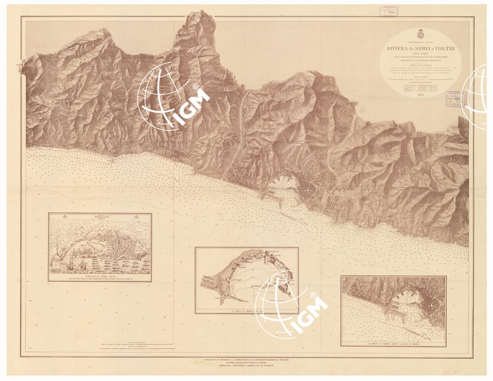Pubblicata in omaggio ai partecipanti al IX Congresso Geografico Italiano, Istituto Idrografico della R. Marina. Direttore A. Alessio Cap. di Vascello.