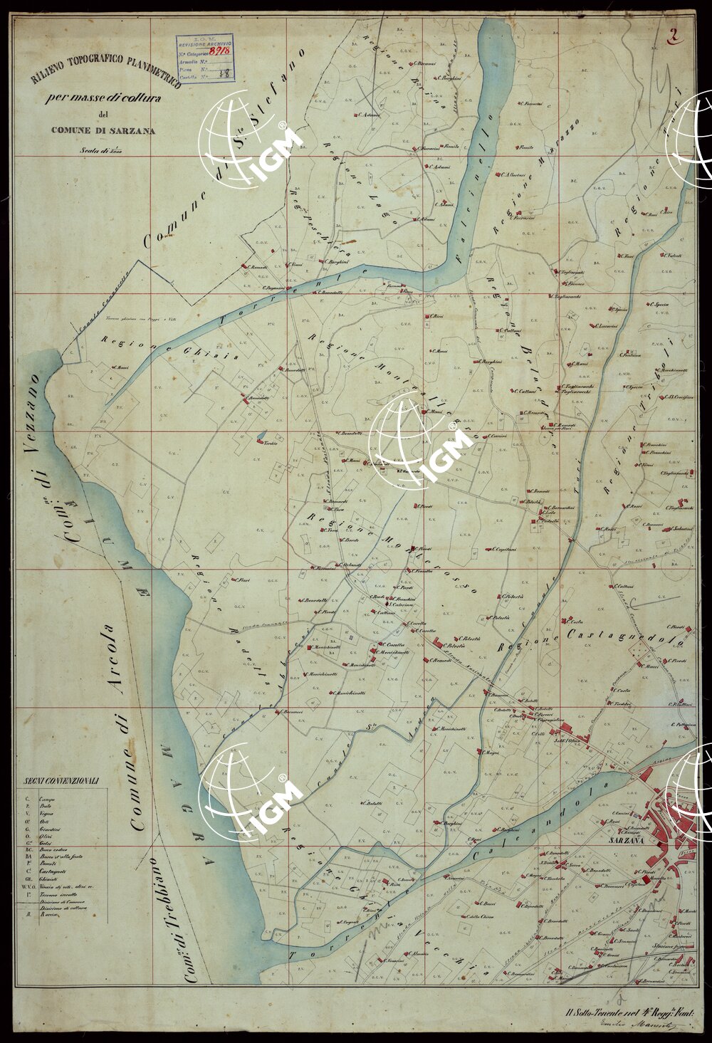 RILIEVO TOPOGRAFICO PLANIMETRICO PER MASSE DI COLTURA DEL SCALA 1:5.000 COMUNE DI SARZANA – TAVOLETTA N.2
