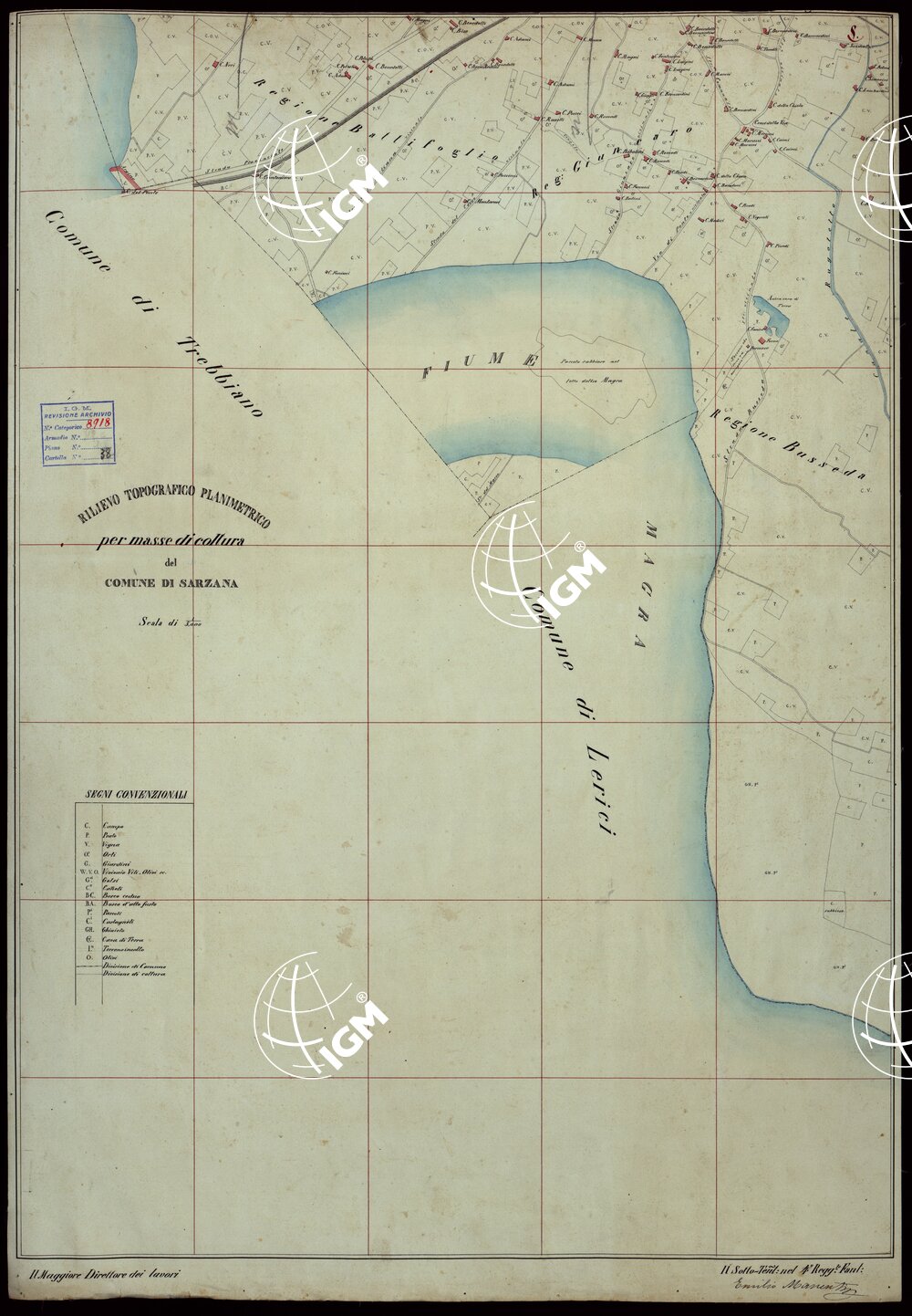 RILIEVO TOPOGRAFICO PLANIMETRICO PER MASSE DI COLTURA DEL COMUNE DI SARZANA -TAVOLETTA N.5
