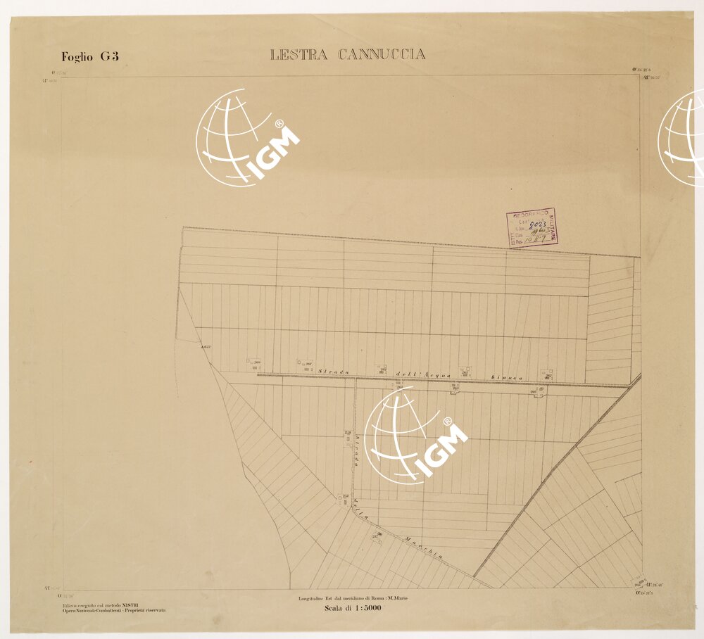 | Titolo proprio | RILIEVO DELLA ZONA DI LITTORIA COL METODO NISTRI – Foglio G3 – Lestra Cannuccia |