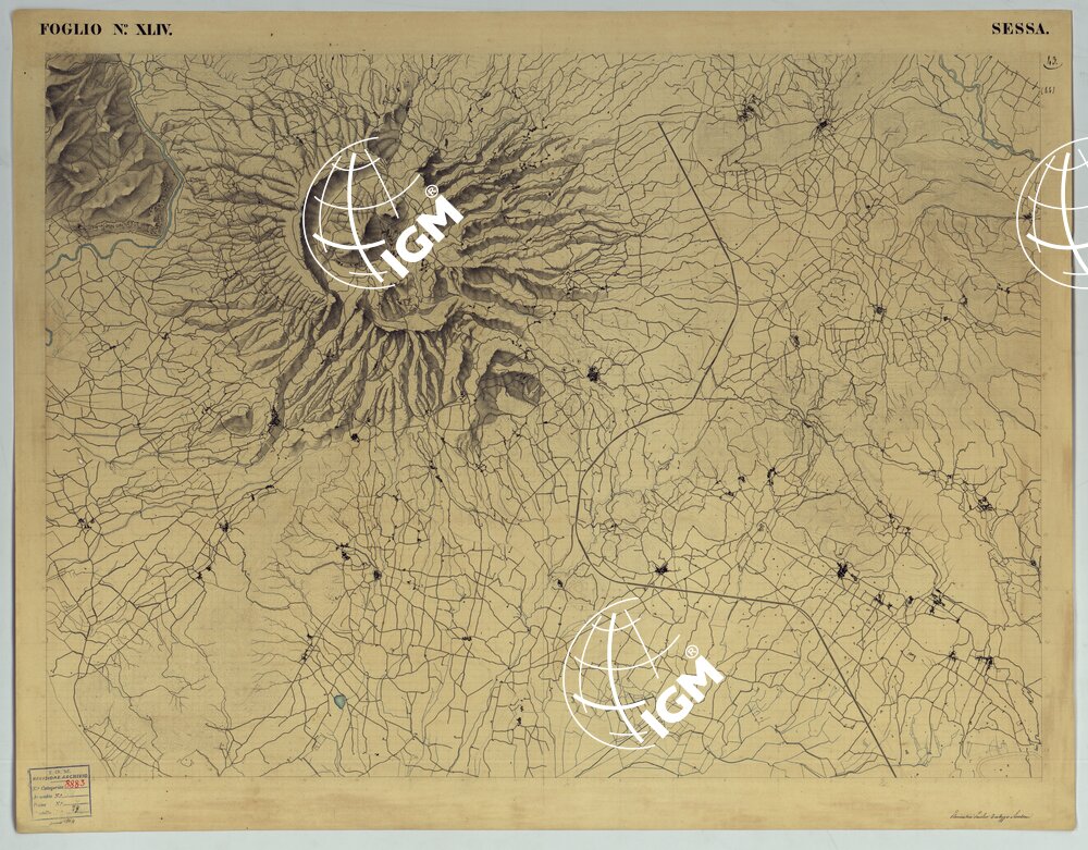 Sono 24 fogli modello che dovevano servire per un acrta delle Provincie Meridionali alla scala di 1:50.000, disegnata su pietra sul tipo di quella del Piemonte alla stessa scala. Questa carta venne abbandonata quando fu decisa l’esecuzione della Carta d’Italia al 100.000. Questi fogli rappresentano l’orografia mediante un fine artistico tratteggio, acque in azzurro, rimanente in nero. Per nitidezza di disegno ed evidenza di rappresentazione alcuni di essi, sono opera veramente pregevole. Non tutti i fogli sono completi: ognuno reca le firme degli operatori. Il titolo non è presente sulla carta.