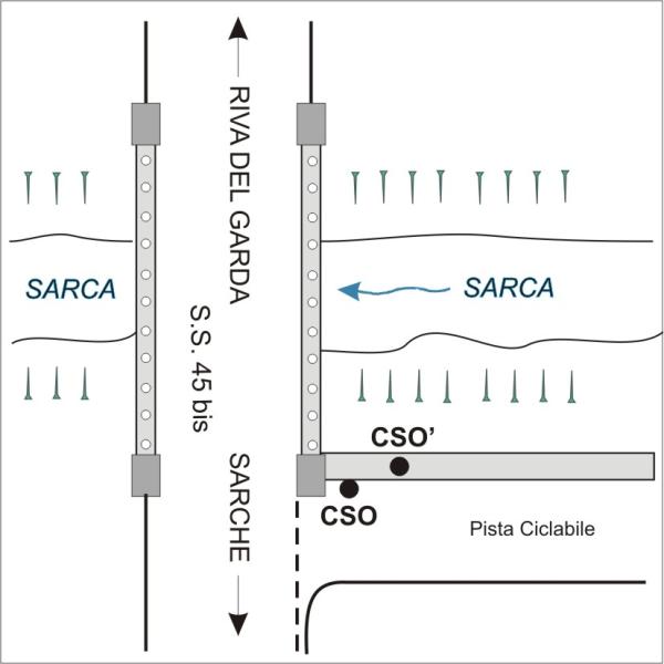 | Contrassegni | [{"simbolo_contrassegno":"B1","materializzazione":"(CSO) – Bullone infisso a lato della soletta in c.a. del marciapiede presso il parapetto a monte riva sinistra del ponte del gobbo sul fiume Sarca."},{"simbolo_contrassegno":"B7","materializzazione":"(CSO') – Contrassegno orizzontale di vario tipo (PAT) infisso sul marciapiede suddetto a circa 1,5 metri dal CSO."}] |