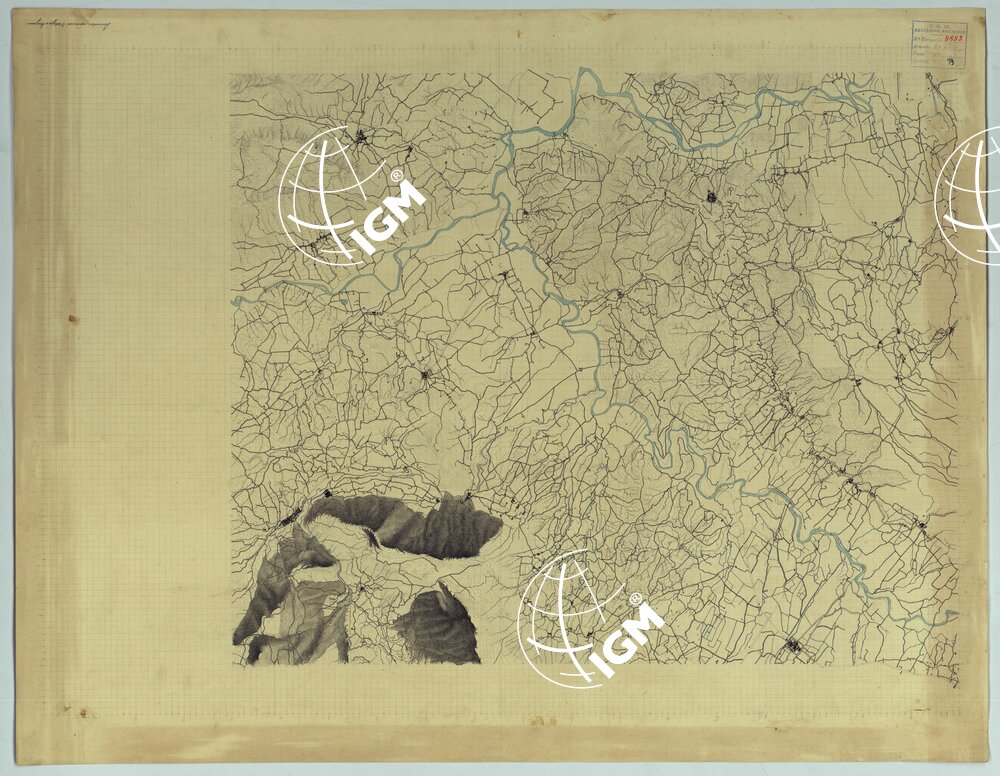 Sono 24 fogli modello che dovevano servire per una carta delle Provincie Meiridionali alla scala di 1:50.000 disegnata su pietra sul tipo di quella del Piemonte alla stessa scala. Questa carta venne abbandonata quando fu decisa l’esecuzione della Carta d’Italia al 100.000. Questi fogli rappresentano l’orografia mediante un fine artistico tratteggio, acque in azzurro, rimanente in nero. Per nitidezza di disegno ed evidenza di rappresentazione alcuni di essi, sono opera veramente pregevole. Non tutti i fogli sono completi: ognuno reca le firme degli operatori. Il titolo non è presente sulla carta.